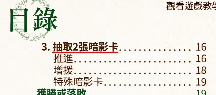 感謝臉書熱心玩家告知,特此說明規則書P2和P16的標題「抽取2張暗影卡」為誤植,正確敘述為「抽取暗影卡」;規則書P2角色棋子圖示的標題「13張角色卡」為誤植,正確敘述為「13個角色棋子」;P14的佔領敘述第三行「希望標誌」為誤植,正確敘述為「避風港標記」,官網線上中文規則說明書已更正,請參考此線上說明書遊玩。