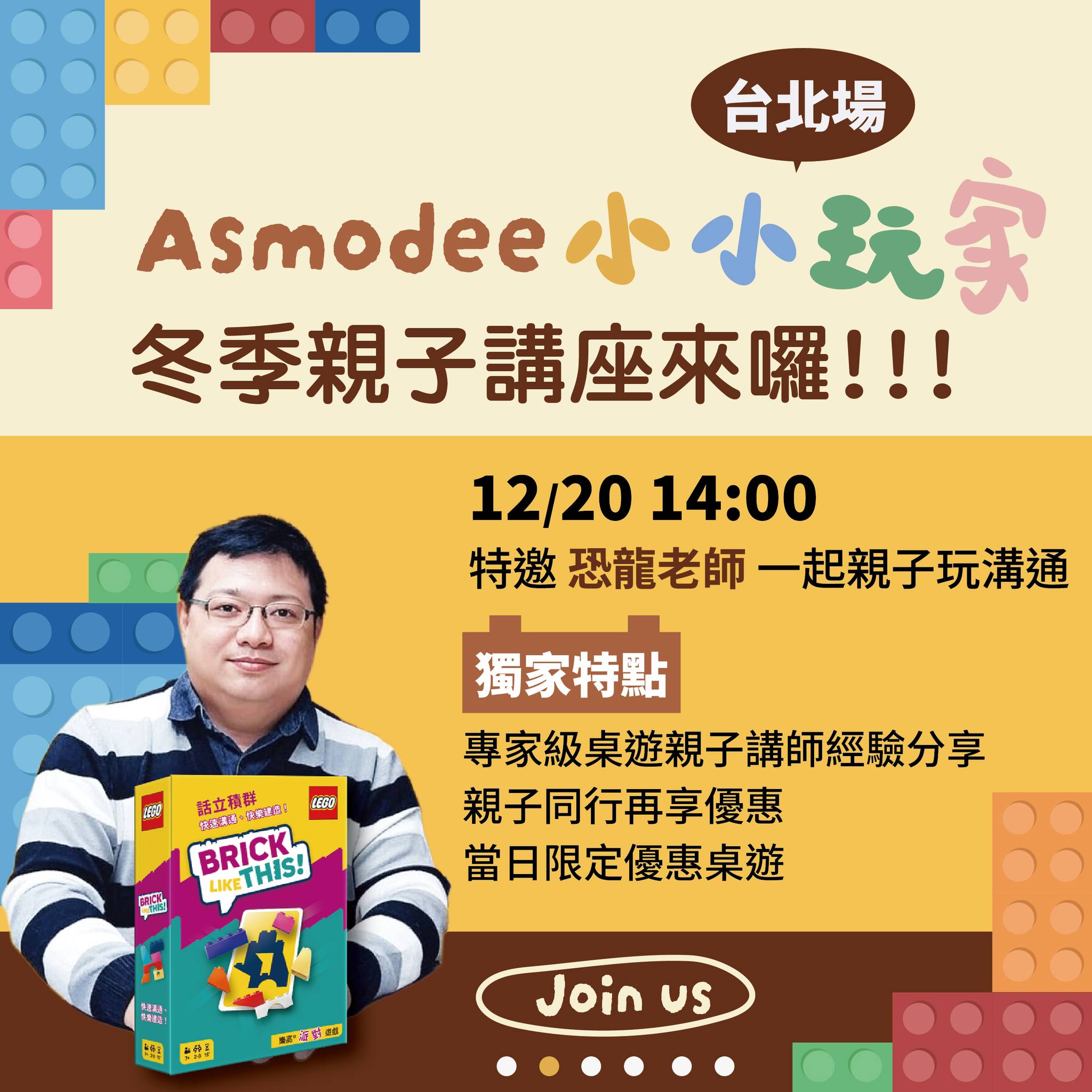 這次 Asmodee 小小玩家特別邀請了超厲害的 恐龍老師-程英竜 與 奶爸-許永清,不只帶大家玩遊戲,更要透過桌遊鑰匙,打開親子溝通的大門。